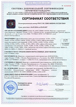 Соответствие готовых смесей заявленным техническим характеристикам и стандартам ГОСТ подтверждается лабораторно. В качестве доказательства успешно пройденных испытаний все отгружаемые партии сопровождаются паспортом качества. Транспортная накладная, которая вручается заказчику при доставке БСГ, свидетельствует о соответствии объема.